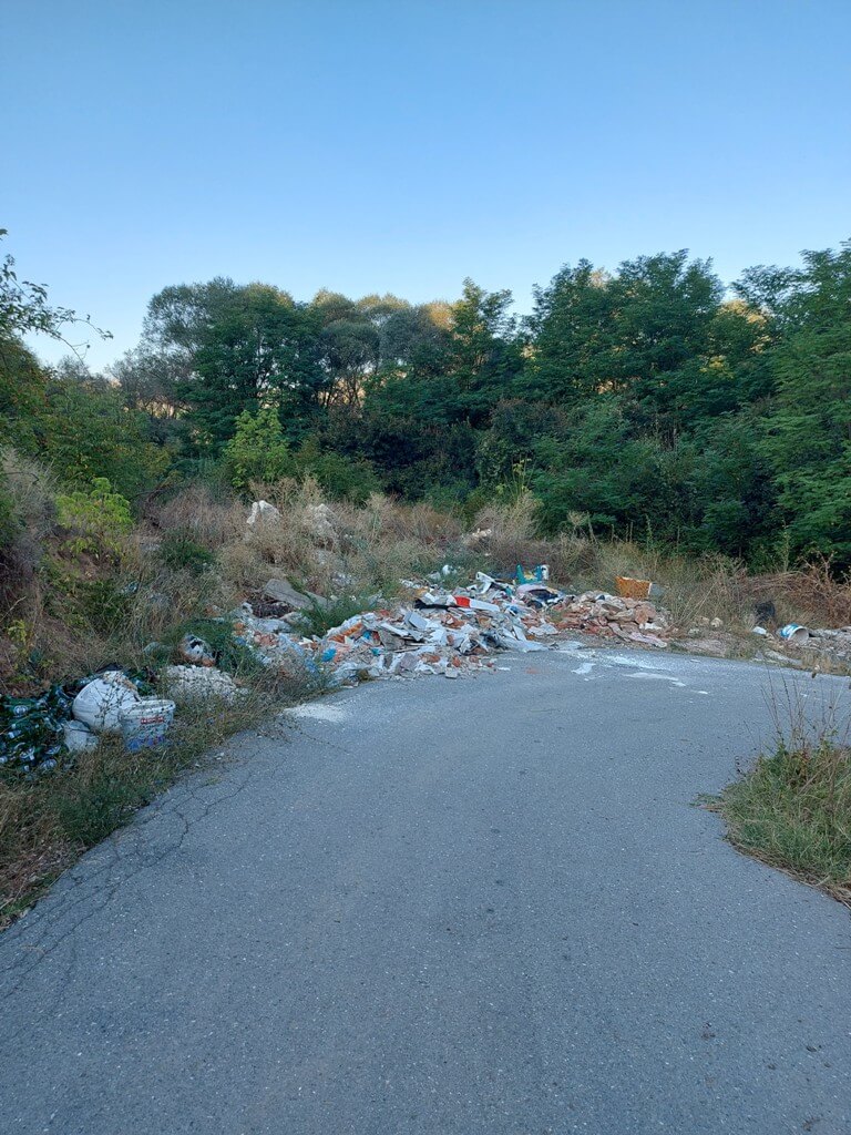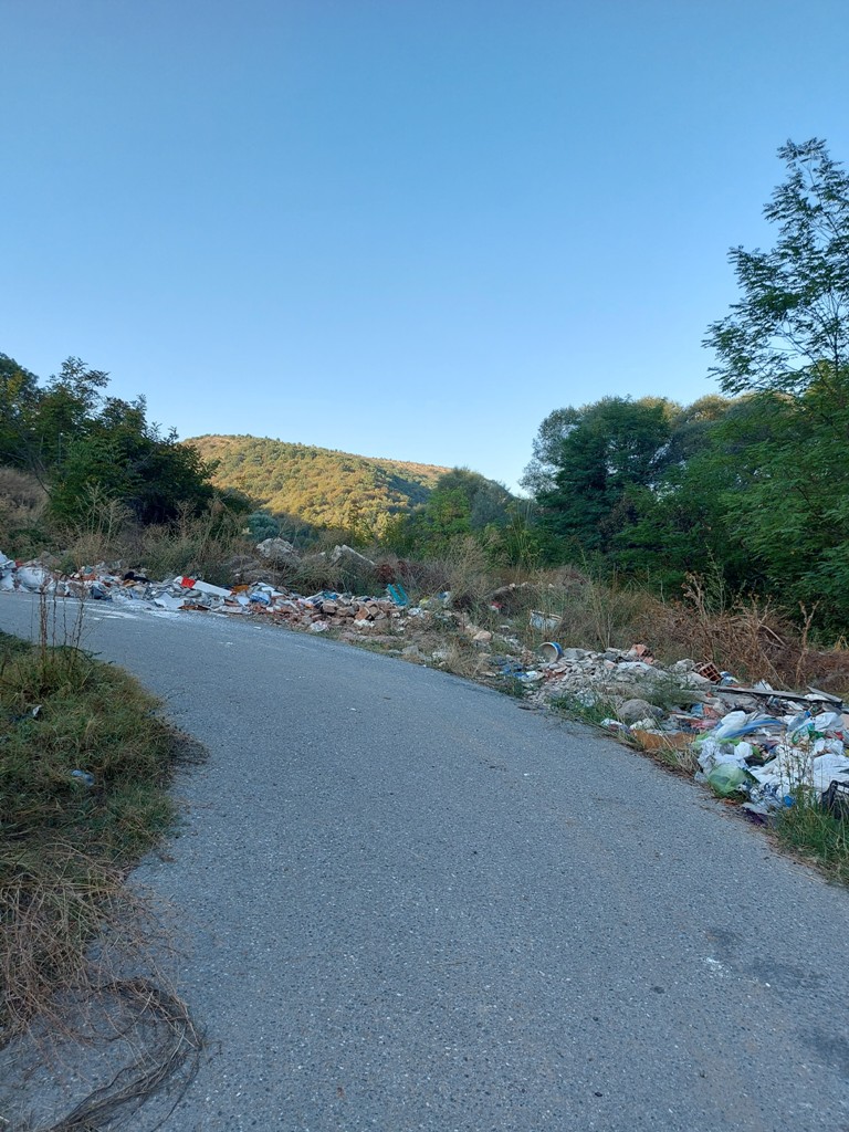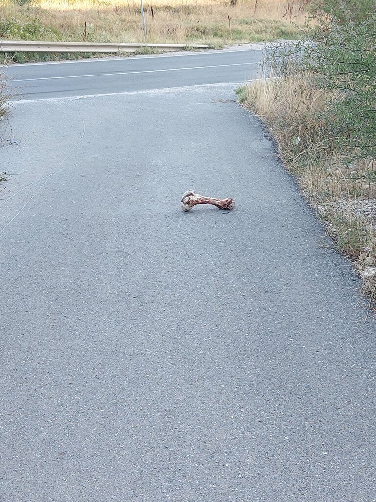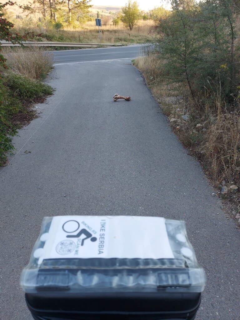 Kako sam krenuo na niže, nailazim na divlju deponiju koja se prostire uz put, ali uskoro i po samom putu, pa počinjem da se pribojavam i za zdravlje mojih guma (ima stakla i metala i …). Pomišljam, proći ću ovo i kasnije će biti bolje. Ne, ne, ne. Đubreta je sve više, shvatam da nema ništa od moje ideje. Pokušavam da pronađem neki put koji će me odvesti dalje od deponije, ali… vraćam se. Tu mi se na putu ispreči jedna veeeelika kost, užas.