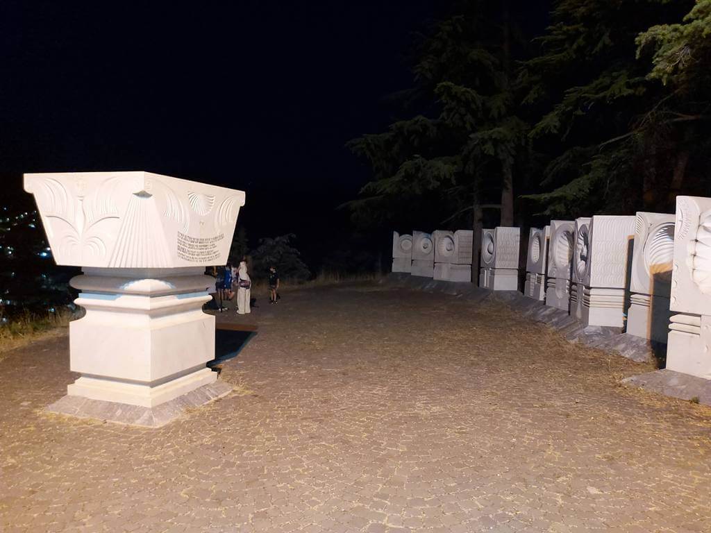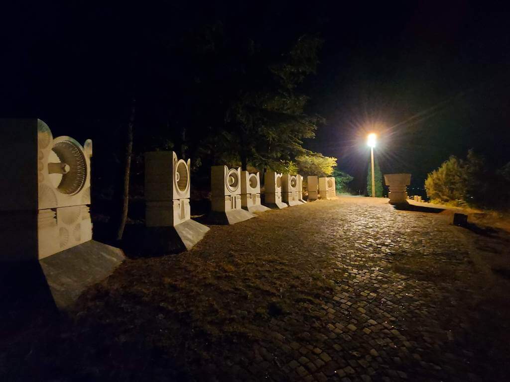 Krećem u potragu za ručkom. Nedelja je. Makedonci ne rade nedeljom. Svi restorani, brze hrane, prodavnice, sve, baš sve je zatvoreno. Nakon sat vremena potrage, hranu kupujem na benzinskoj stanici. Verovatno, ne slučajno, imaju konzerve, sirne namaze, jogurt i sl. Nakon jela, dremka. Izmorila me potraga za hranom. Penjem se na tvrđavu Isar, već pada mrak, lep pogled na grad, ali ništa posebno. Na slici je neki spomenik tj. niz spomenika, atvrđava je skroz u mraku i nezahvalna za fotografisanje. Malo sam se i pogubio, nema uređenog puta, ali…