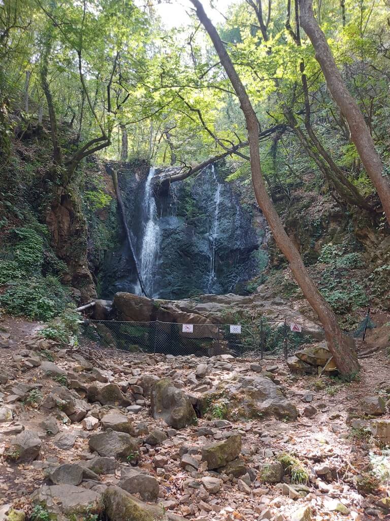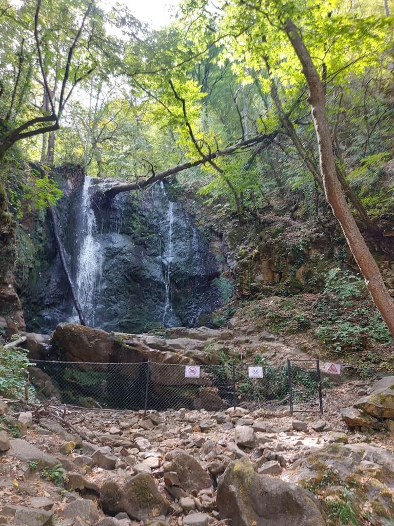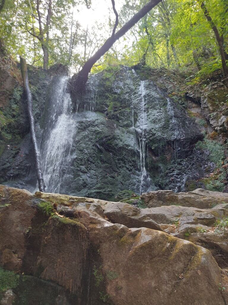 Jedan je pravac, najdalji je Smolarski vodopad, najviši vodopad u Makedoniji. Nešto bliži su Kolešinski i Gabrovski. Vozim se prilično opterećenim putem, dosta je vozila, postoji neka moja teorija da mi je 60km vožnje biciklom optimum, nakon toga postaje ili dosadno ili zamorno ili… Kada sam stigao u Kolešino GPS pokazuje 88km, to je dosta. Neću pokušavati da stignem do Smolarskog vodopada. Penjem se do vodopada, divno je, sveže nakon čitavog dana na suncu, uživam.