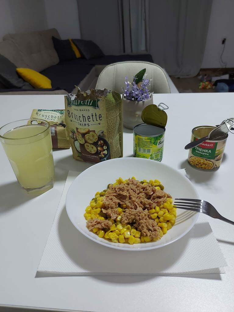 Poučen jučerašnjim iskustvom, tražim uz pomoć Google Maps najbližu benzinsku stanicu. Nije baš ni blizu, ali… Na moju radost shvatam da je stanica u sastavu tržnog centra koji, gle čuda, radi! Ulazim u jedini restoran brze hrane, ali nema ništa kašikom, pa čak ni neka salata koja bi me privukla. Odlazim u market, snabdeven vraćam se u smeštaj i pravim novi Corn mix. Kukuruz (mak: pčenka) me čudno privlači ovih dana, baš mi prija.