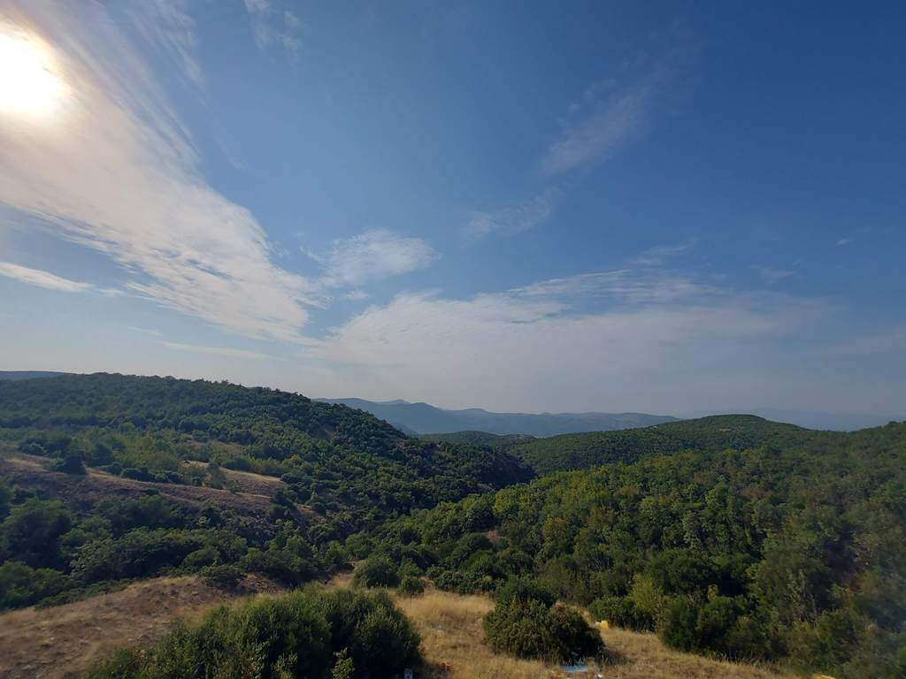 No, danas je moj cilj Dojransko jezero tj. Star Dojran na samoj granici sa Grčkom. Penjem se uzbrdo i sa vrha se pruža prelep pogled na planine u daljini. Ipak, parking na kojem stojim je poražavajuće prljav. Deluje da je tu bila ogromna deponija (uvek nelogično, na vrhu brda, verovatno da lakše vetar odnese i da padne u dolinu???) i kao da ju je neko nedavno u izvesnoj meri očistio. Razočaran sam, ali tako je to kod nas na Balkanu.