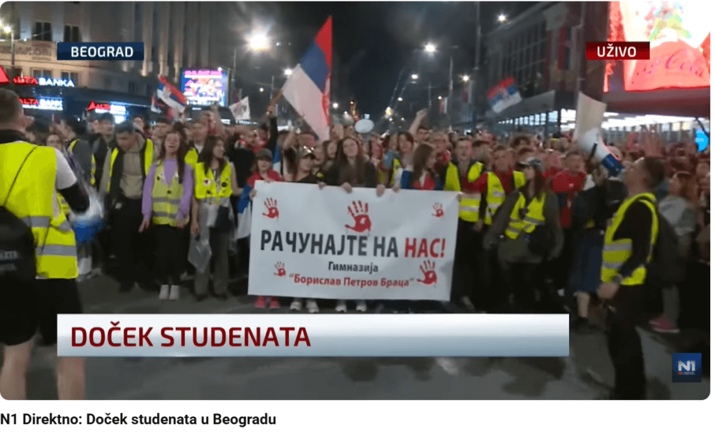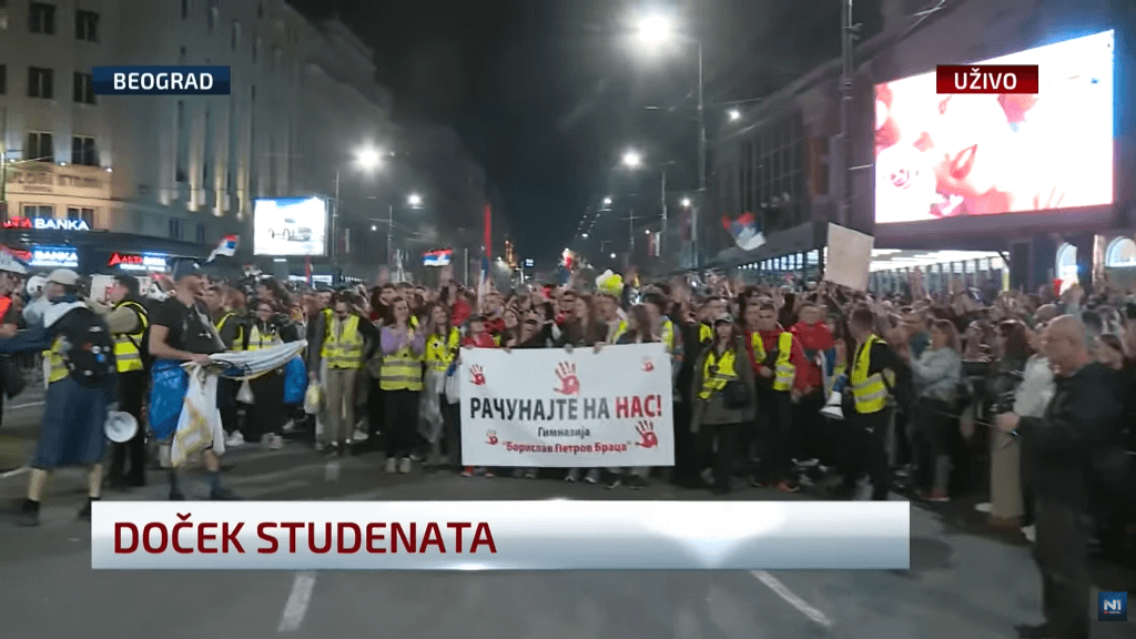 Studenti koji od decembra blokiraju državne fakultete, mesecima predvode mirne proteste u širom zemlje. Traže, pre svega, odgovornost za pogibiju 15 ljudi u obrušavanju Železničke stanice u Novom Sadu.