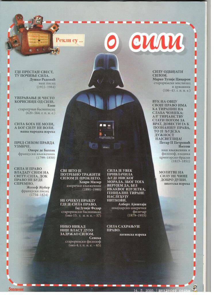Sjajni Zabavnik, verujem da nije slučajno, 14. marta 2025. godine u rubrici Rekli su…o sili.